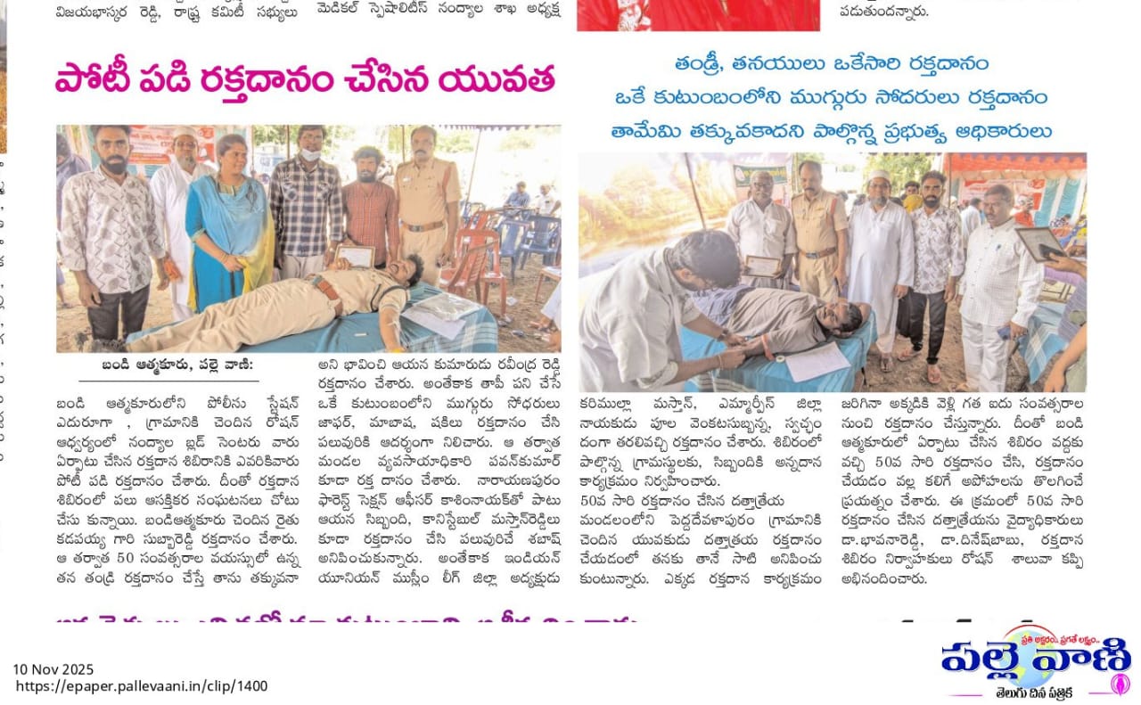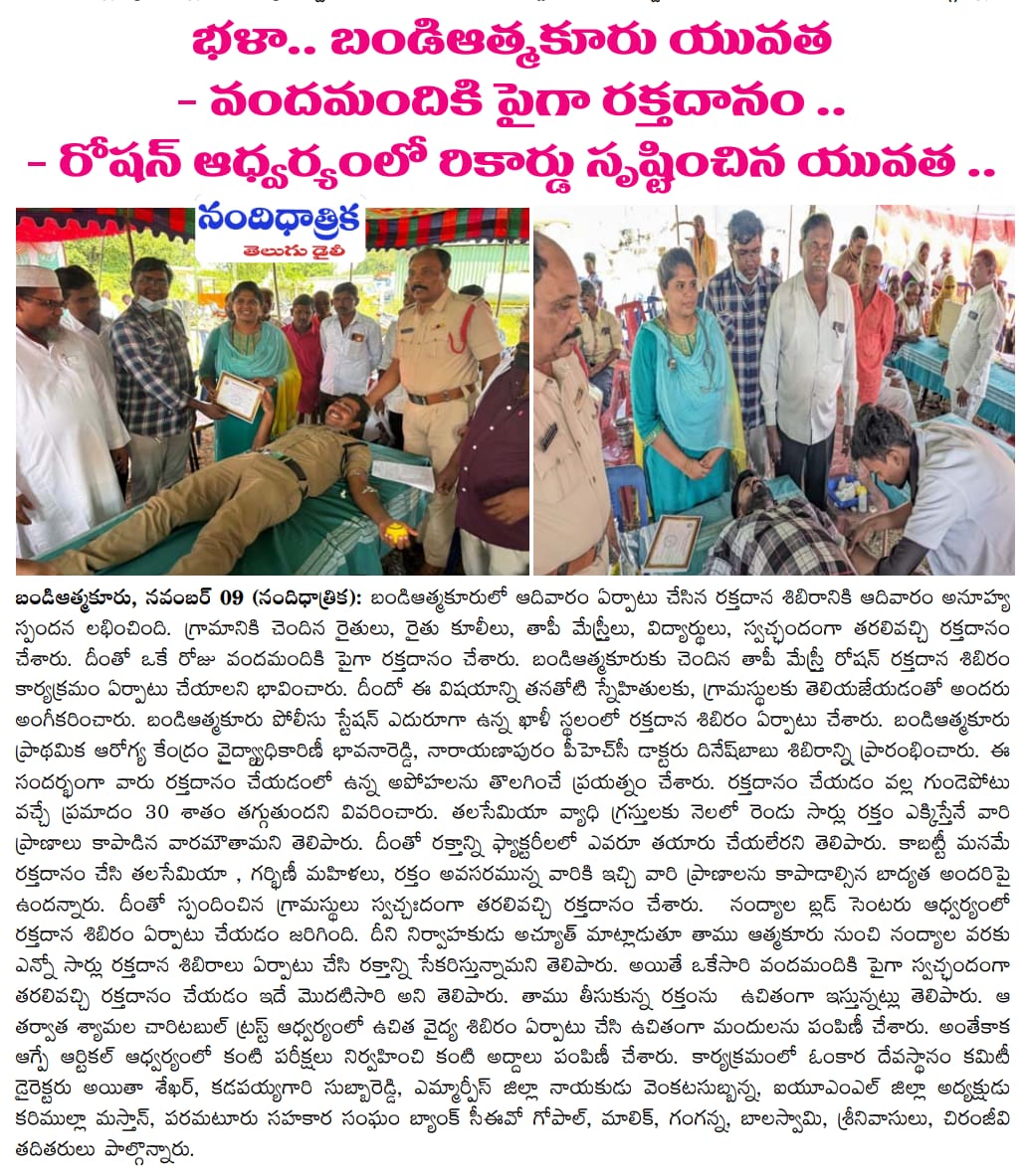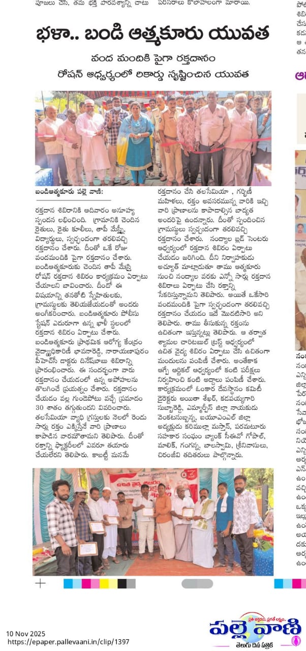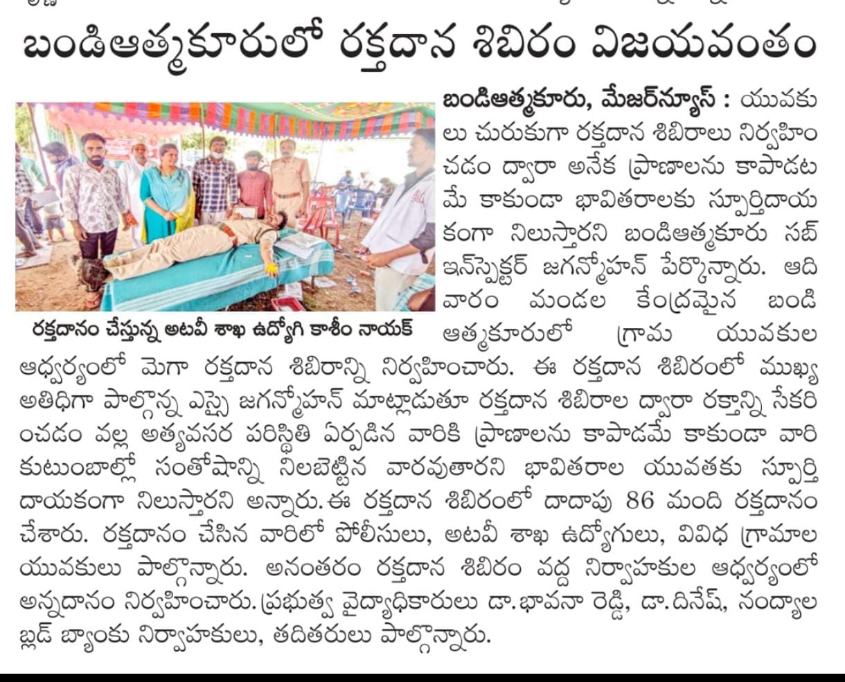 Blood Donation Camp (09-11-2025) in Bandi Athmakur Concludes Successfully