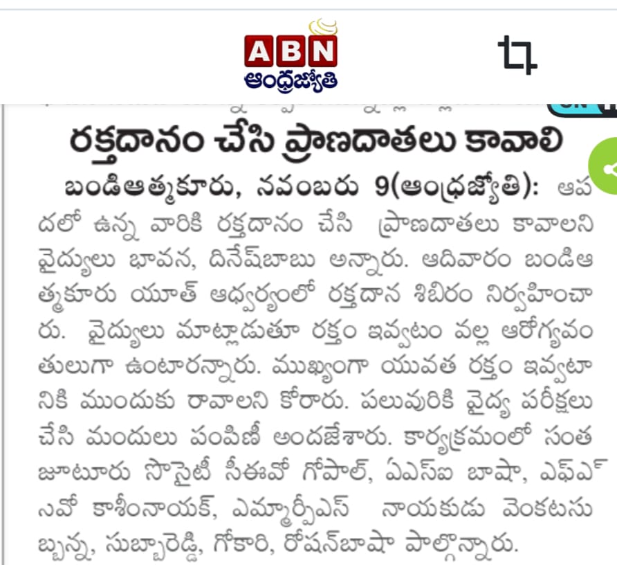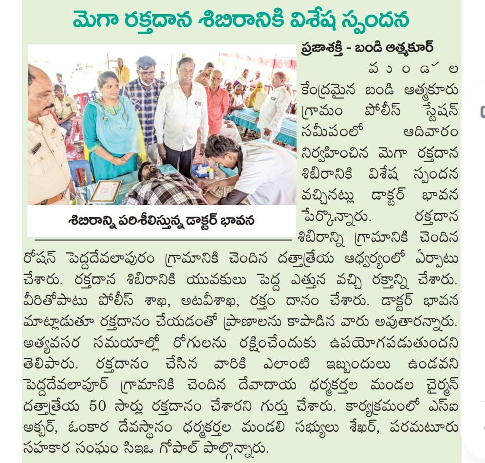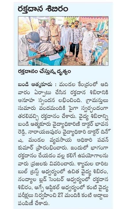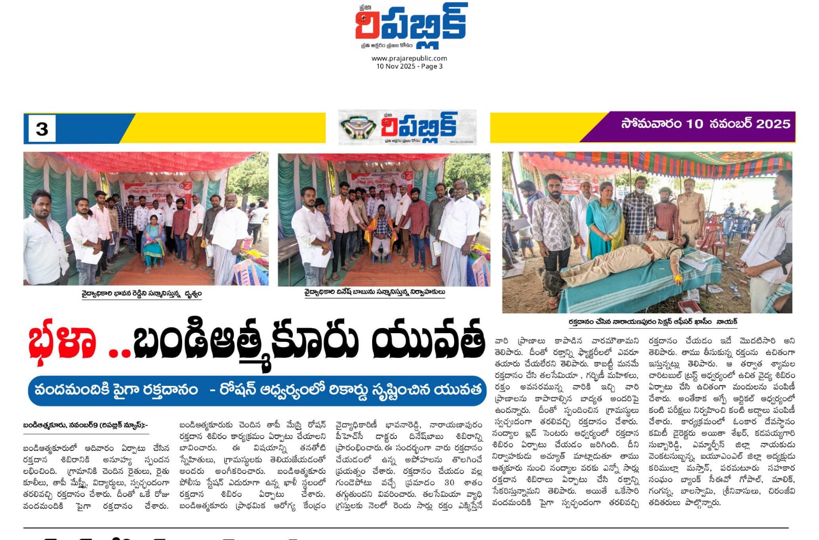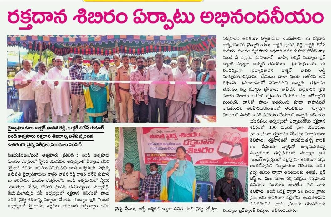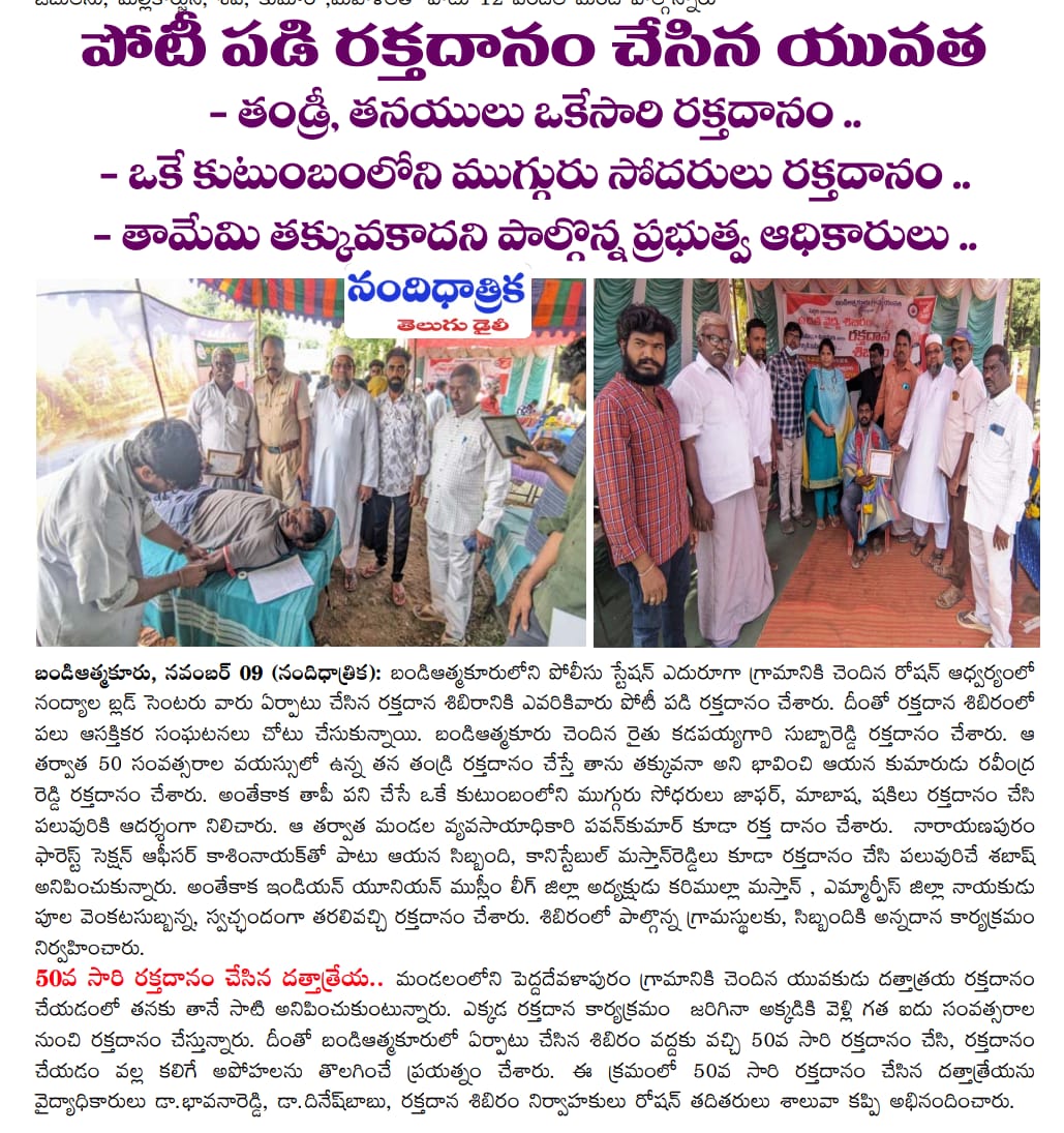 Blood Donation Camp (09-11-2025) in Bandi Athmakur Concludes Successfully